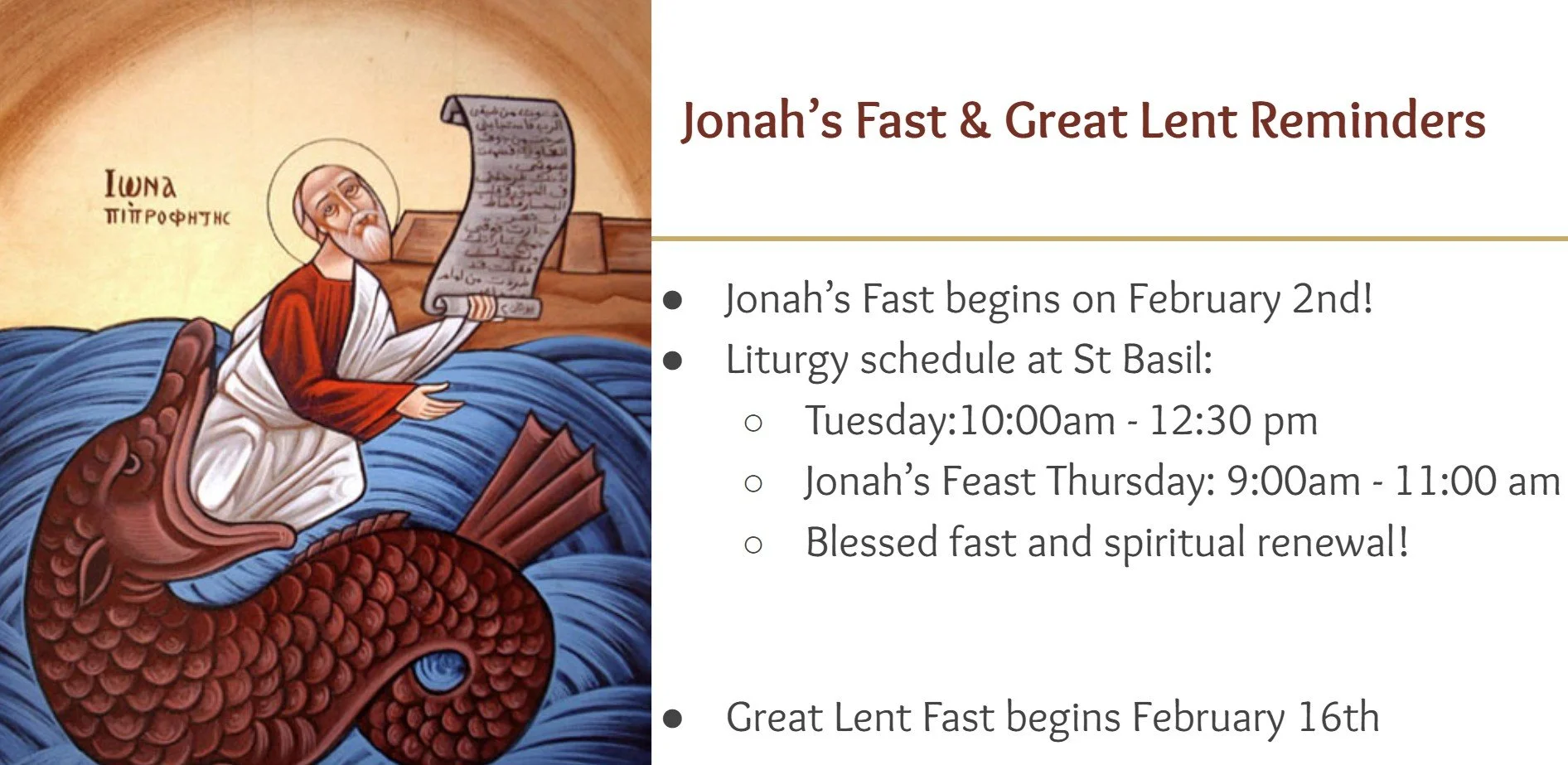 Great Lent Fast: February 16th - April 11th